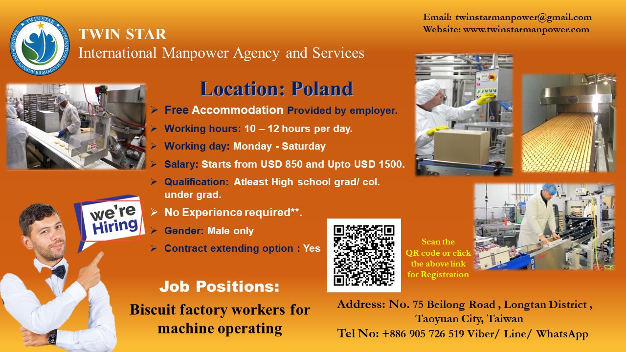 We would like to introduce our Company “TWIN STAR International Manpower Agency & Services” Which is the leading and fastest-growing Manpower Service organization in Taiwan. We offer our corporate clients a range of services such as Contract Staffing, Permanent Recruitment, and Overseas manpower services.